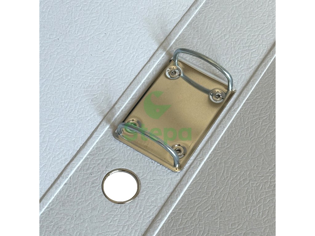 Šíře hřbetu je 8 cm. Pořadač má lepenou hřbetní etiketu.