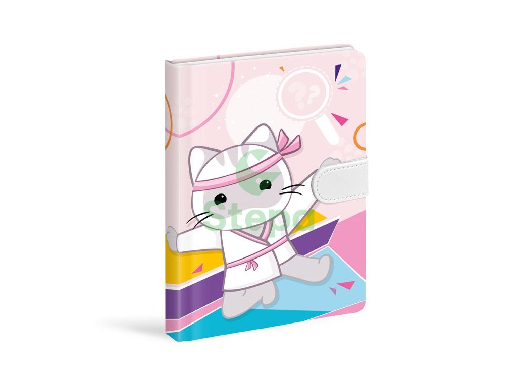Blok s magnetem SPY NOTES s linkami,100 listů, Motiv: kočička v kimonu 130 x 190 mm