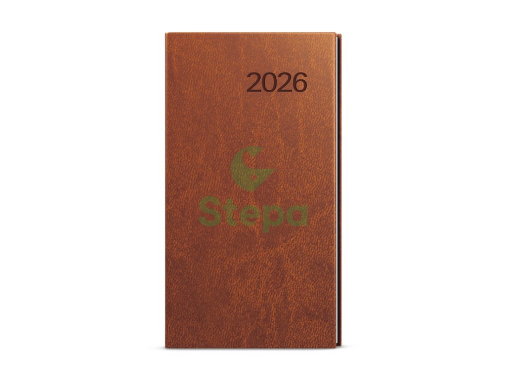 Kapesní týdenní diář v hnědé barvě je vyráběný z jemné hladké vivelly. Trendy a praktický doplněk do každé kapsy. Diář má velký prostor pro poznámky a plánování.