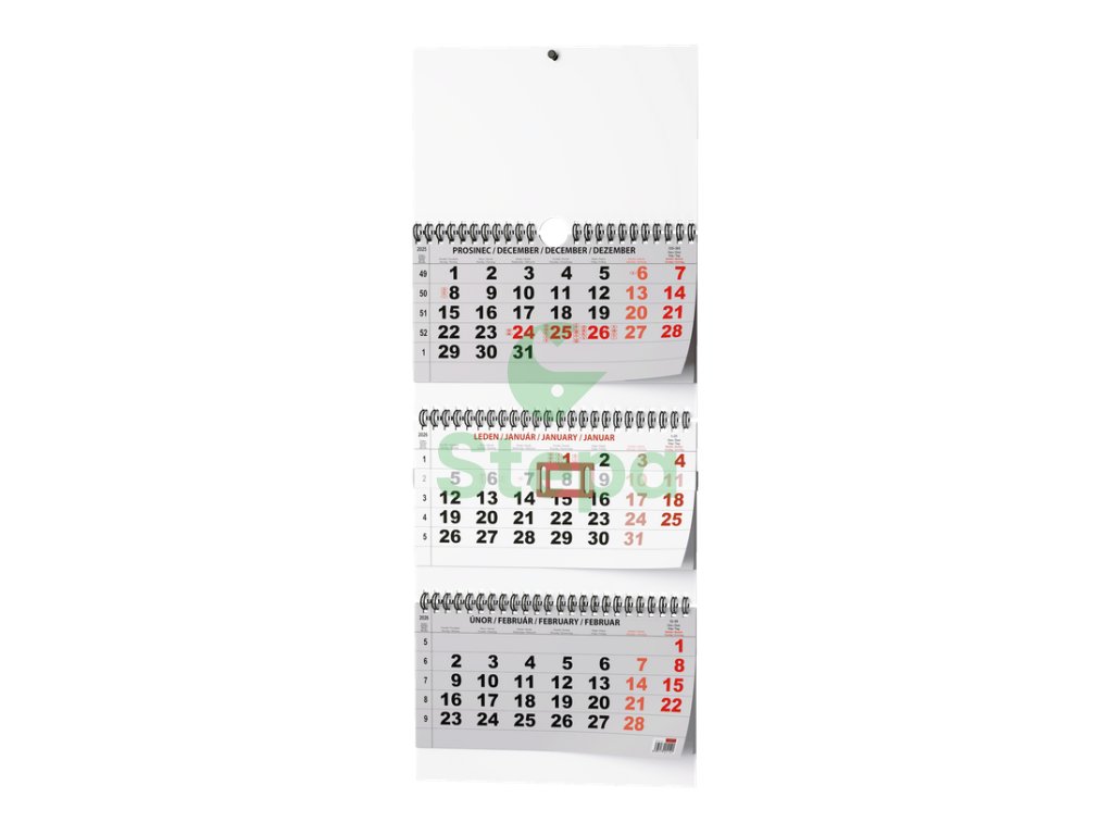 Praktický skládací nástěnný kalendář s tříměsíčním kalendáriem a posuvným jezdcem vhodný do Vaší kanceláře.