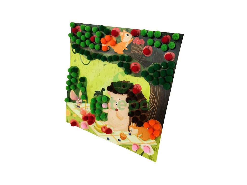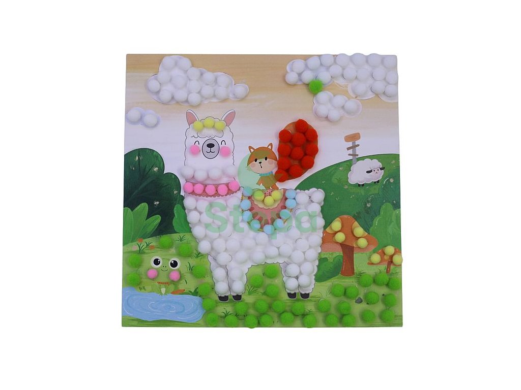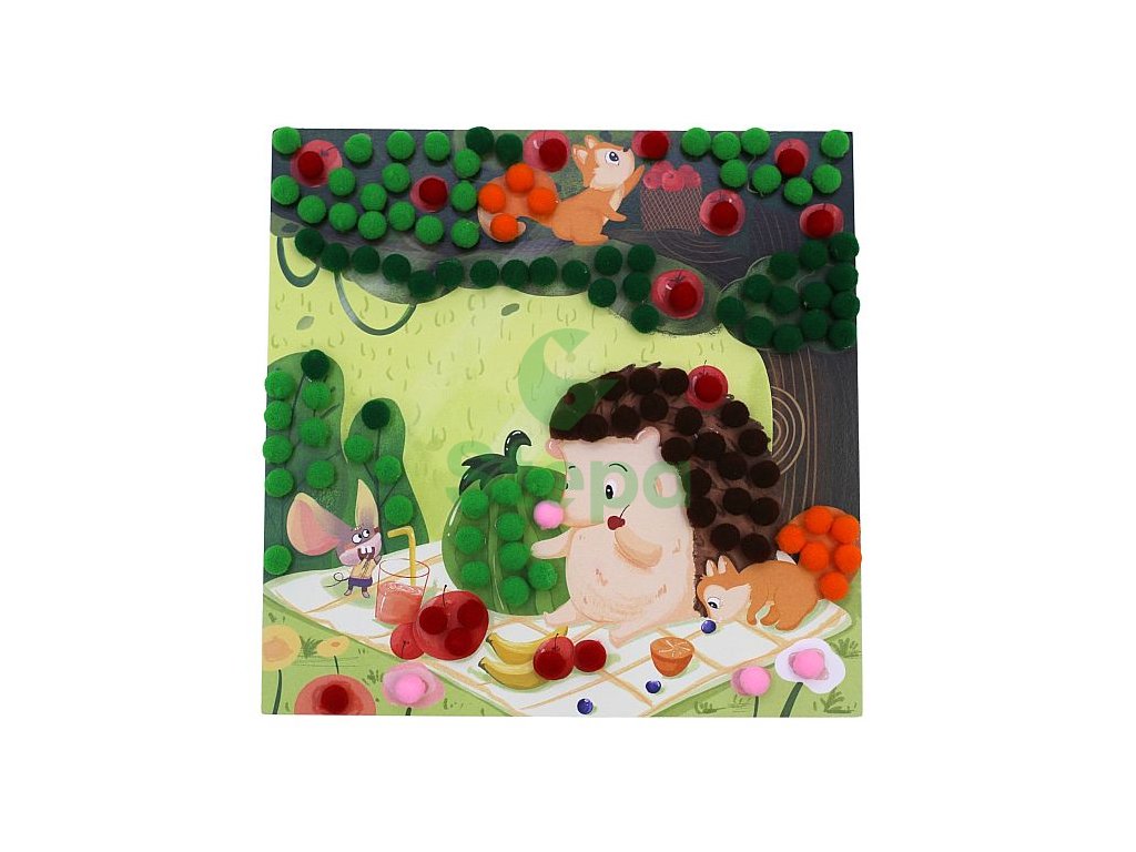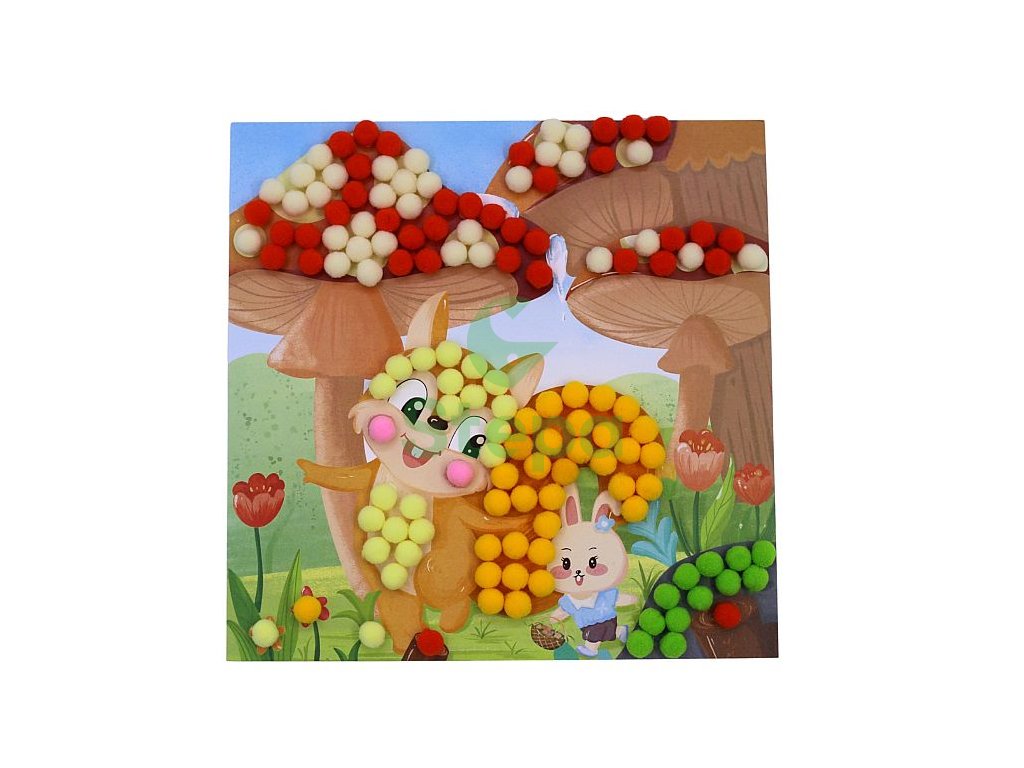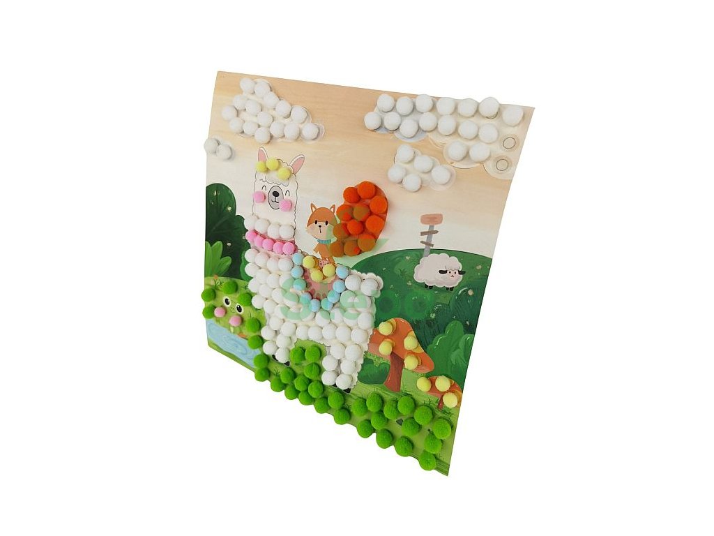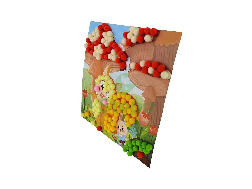 Stačí podle předlohy přilepit pompomy na určená lepivá místa a vytvořit tak originální obrázek.