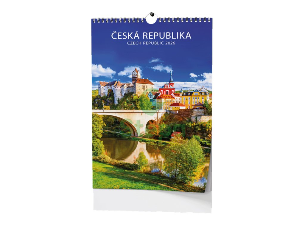 Nástěnný kalendář s obrázky známých míst v České republice.