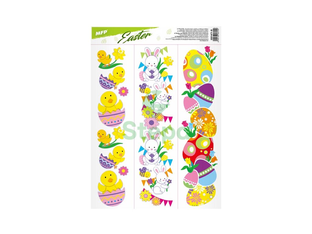 Okenní fólie bez lepidla, velikonoční kuřátka, vajíčka, zajíčci. Oslavte svátky jara s těmito krásnými samolepkami na okno. Vytvoří Vám kouzelnou velikonoční atmosféru.