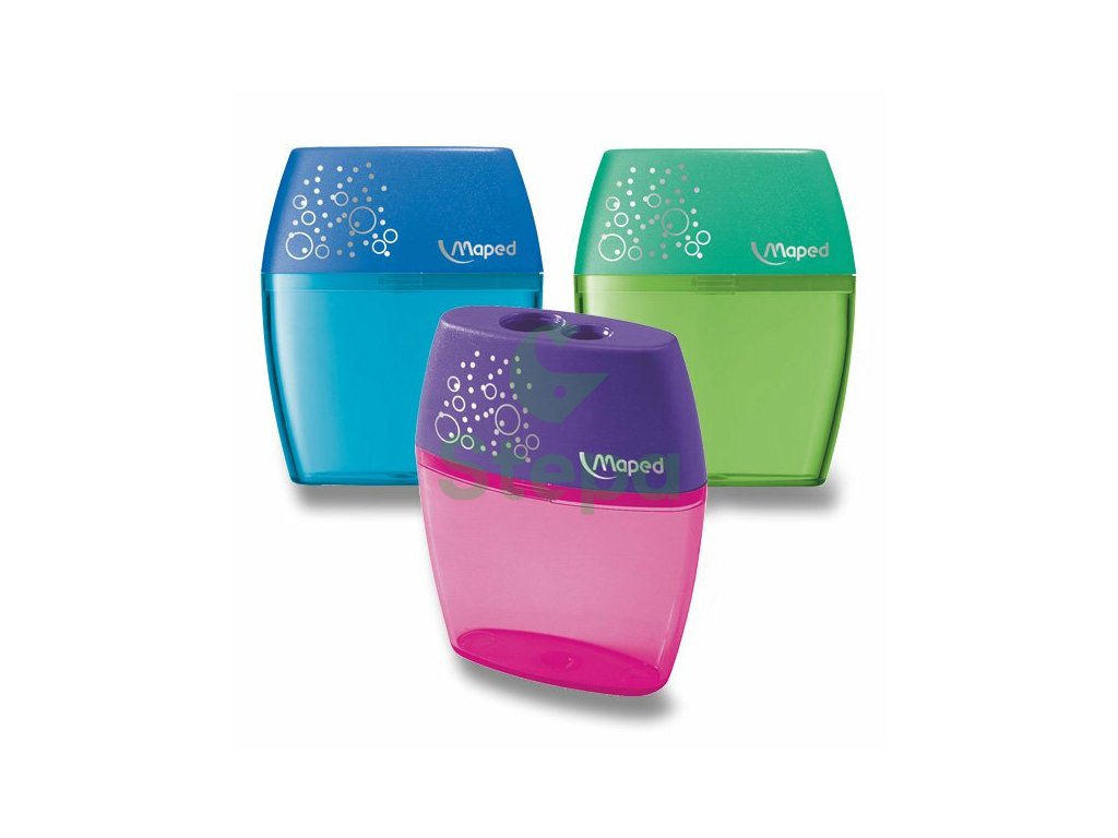 Plastové ořezávátko s průhlednou odpadní nádobkou a 2 otvory.