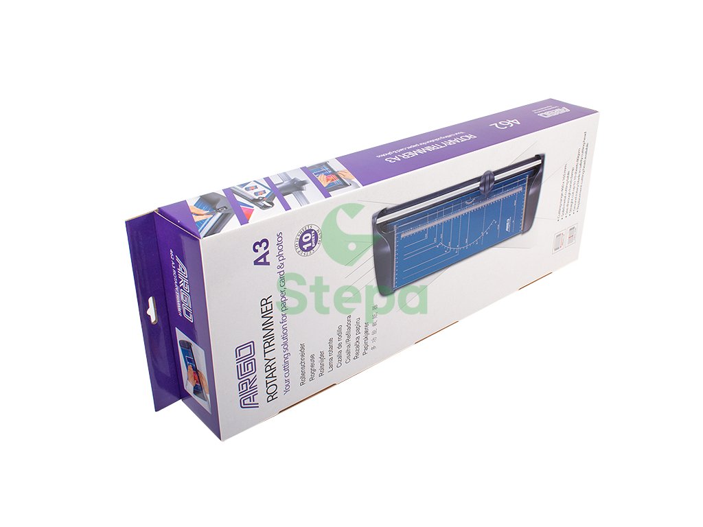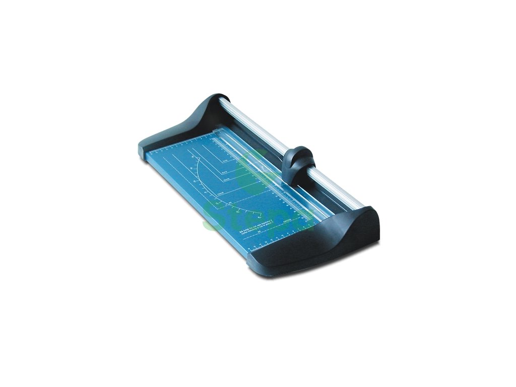 Kotoučová řezačka s broušeným kolečkem na profilované tyči s maximální délkou řezu 460 mm. Pracovní stůl je vybaven natištěnými měřítky a úhly. Nechybí přítlačná lišta z průhledného plastu. Řezačka díky své konstrukci uřízne bez problémů 10 listů papíru.