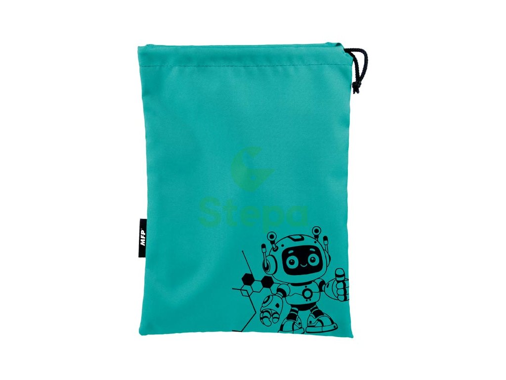 Látkový sáček na přezůvky v modré barvě s vtipným motivem „ROBOTA“