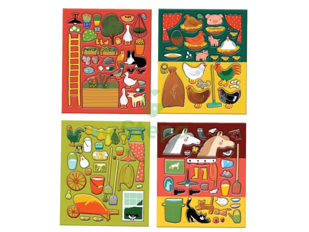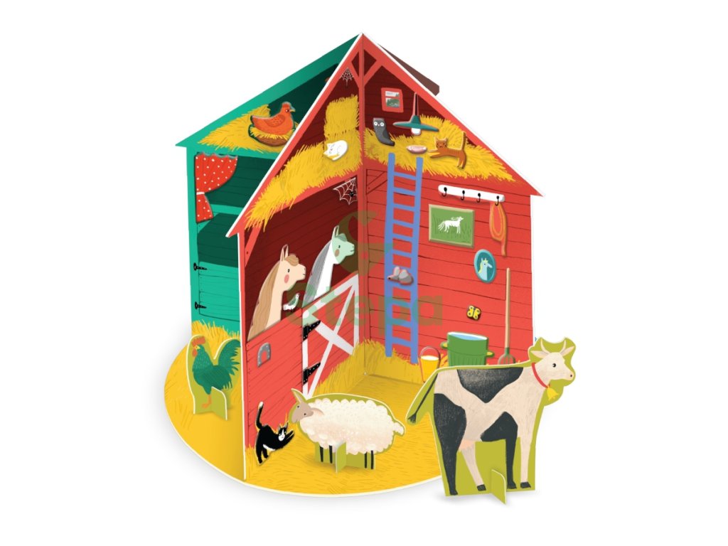 Set krásných samolepek a hrací 3D kartonový domeček s motivem farmy.