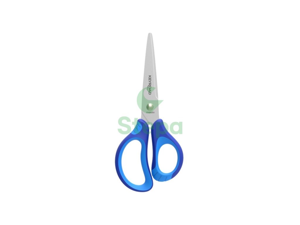 Školní nůžky s kulatou špičkou 15cm. Ergonomická a měkká rukojeť pro snadnější držení. Kvalitní ocelové nože. Dodáváno v modré barvě.
