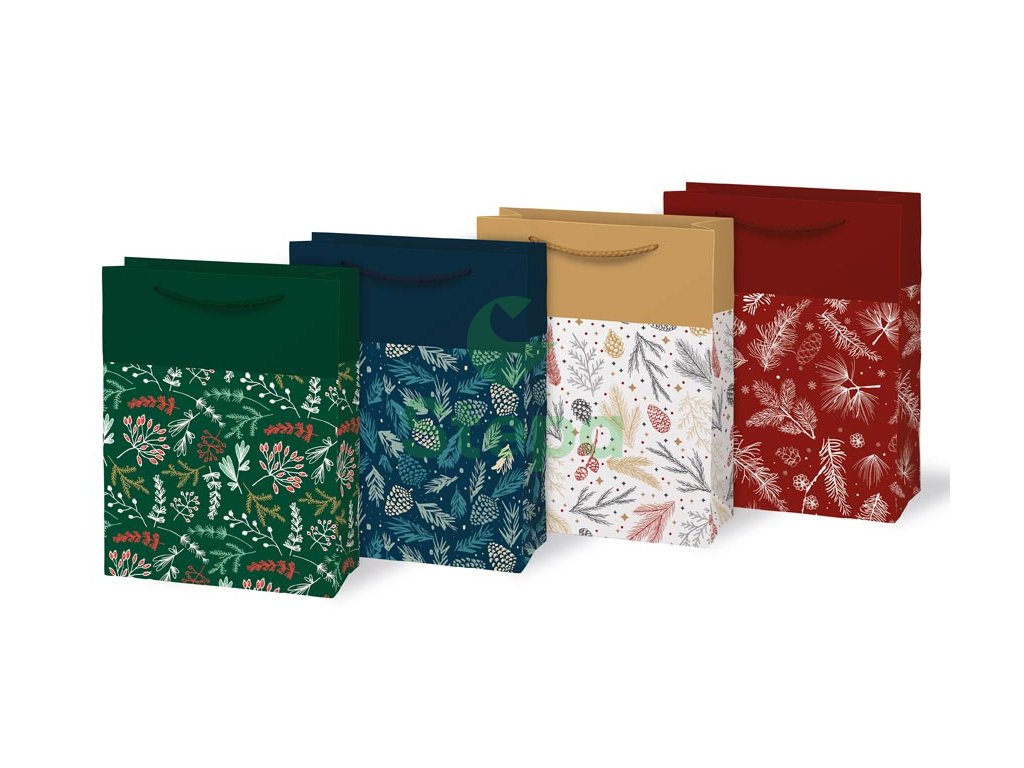 Pokud hledáte decentní, ale stylový způsob balení vánočních dárků, tato dárková papírová taška MFP T4 vás nadchne. Motivy větviček, šišek a jemných vánočních vzorů dodávají tašce elegantní vzhled, který potěší každého obdarovaného. Díky svému praktickému rozměru je ideální pro středně velké dárky.