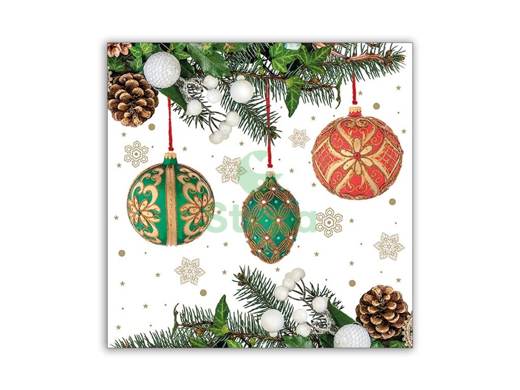 Ubrousky 3-vrstvé 33x33cm vánoční / 20ks - baňky
