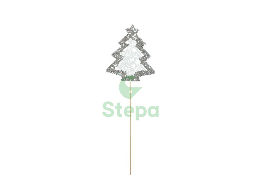 Zápich stromek dřevo bílá s glitrem 7,5cm/35cm